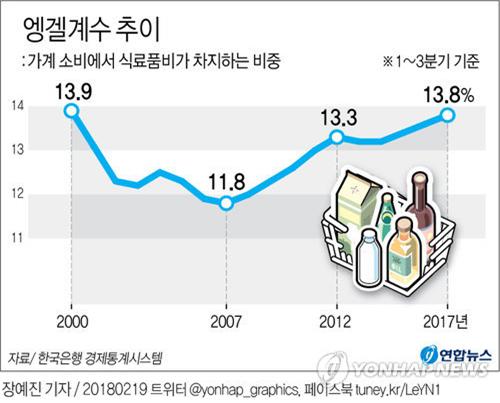 ¾Þ°Ö°è¼ö ÇÑ °¡Á¤´ç ½Ä·áǰºñ°¡ Â÷ÁöÇÏ´Â ºñÁßÀ» ¶æÇÏ´Â °ÍÀ¸·Î ¾Þ°Ö°è¼ö°¡ ³ôÀ»¼ö·Ï ±¹¹ÎÀÌ °¡³ÇÏ´Ù°í ÇÒ ¼ö ÀÖ´Ù. °¡°è ¼Òºñ¿¡¼ ½Ä·áǰºñ°¡ Â÷ÁöÇÏ´Â ºñÁßÀ» ¶æÇÏ´Â ¿¨°Ö°è¼ö°¡ 17³â ¸¸¿¡ ÃÖ°í·Î ³ªÅ¸³µ´Ù. ½Ä·áǰ ¹°°¡ »ó½ÂÀÌ ÁÖ¹üÀ̶ó´Â ºÐ¼®ÀÌ ³ª¿Â´Ù.